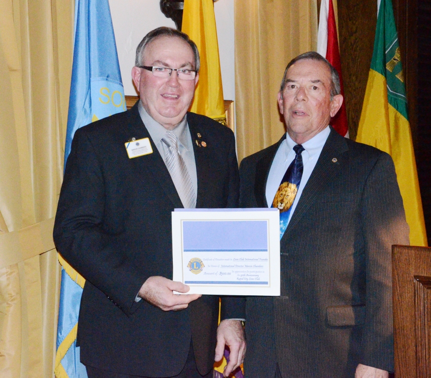 Vice President Dennis Schaar presented a certificate to I. D. Chambers of the $500-donation to Lions Club International Foundation in the director's name.